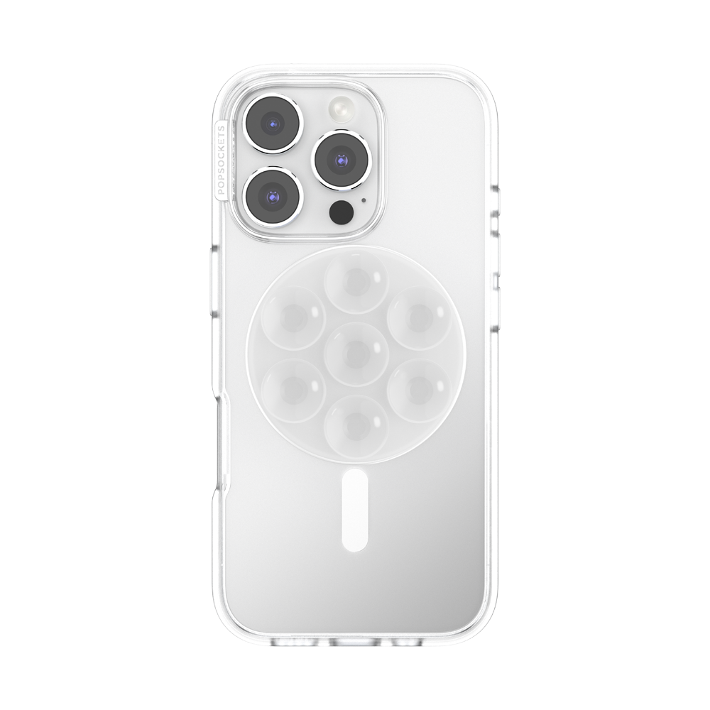 Clean and minimal with a barely-there look. Grip and stand all in one. Sticks to smooth surfaces. Easily swap between MagSafe accessories. Includes magnetic adapter ring for compatibility.