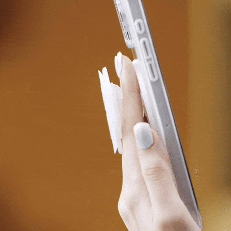 • Provides maximum grip and stand utility, while simply sliding off (when desired) to allow for wireless charging