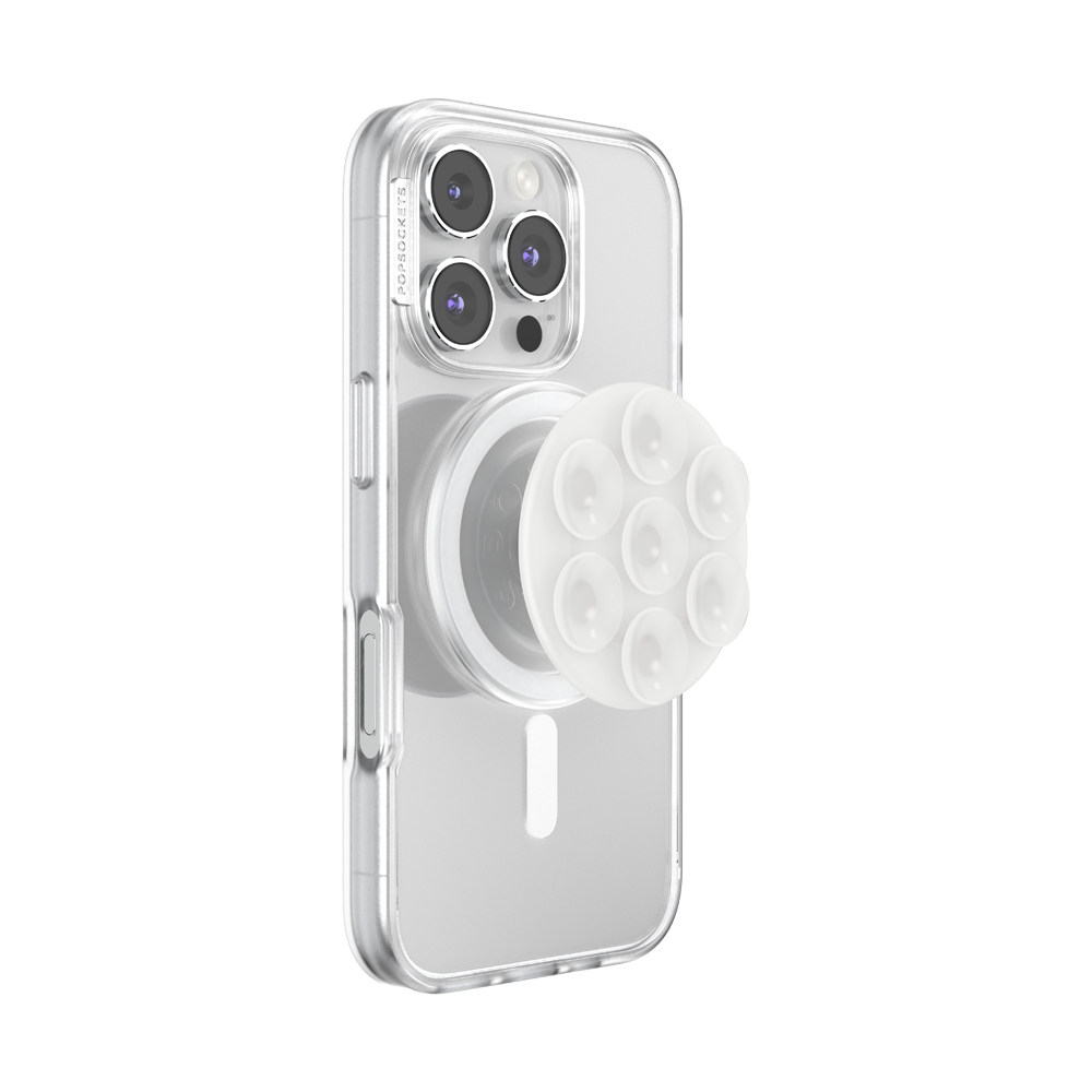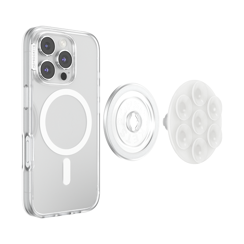 Clean and minimal with a barely-there look. Grip and stand all in one. Sticks to smooth surfaces. Easily swap between MagSafe accessories. Includes magnetic adapter ring for compatibility.