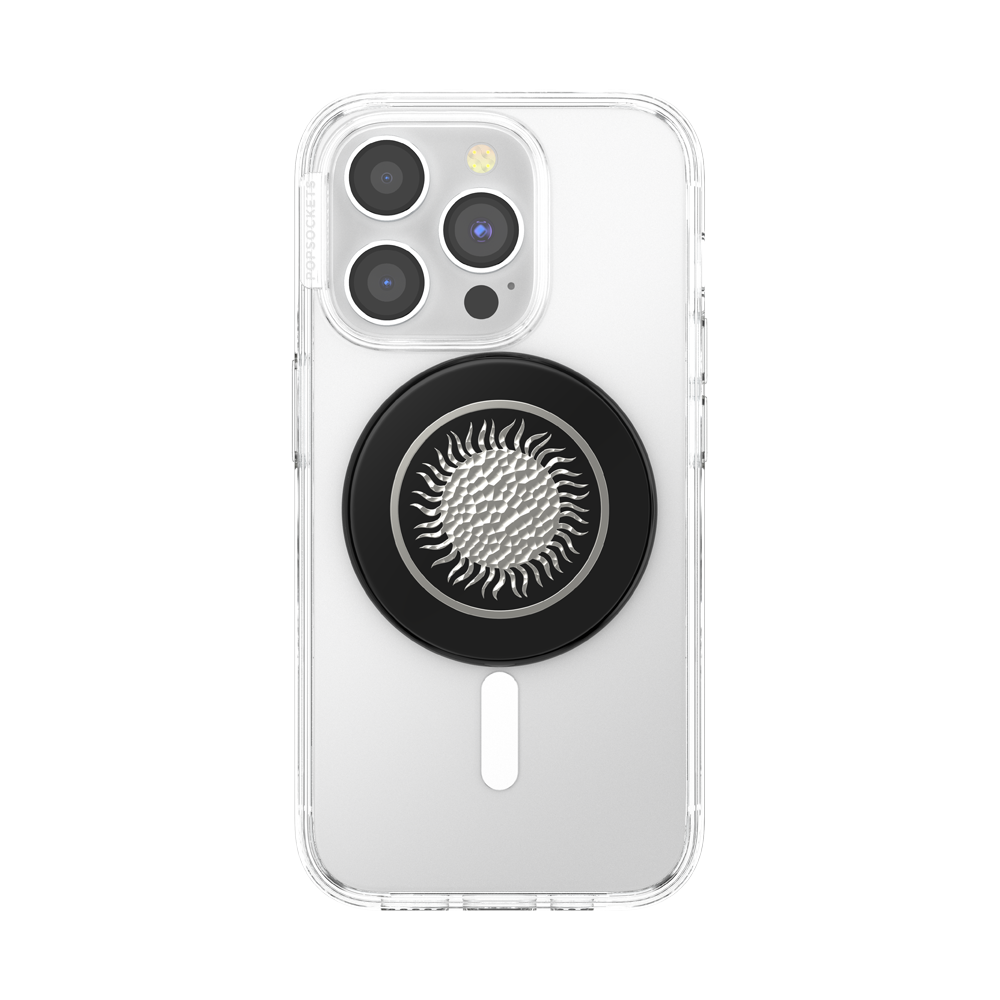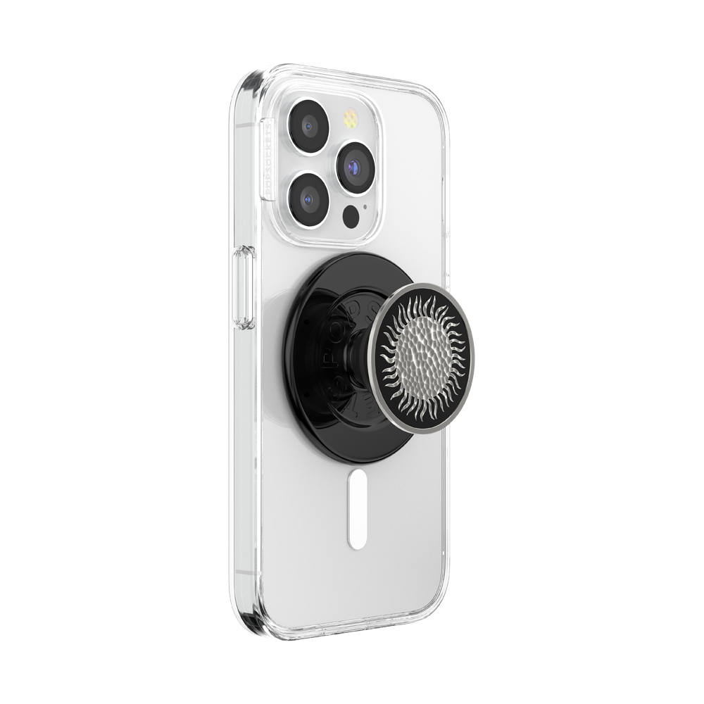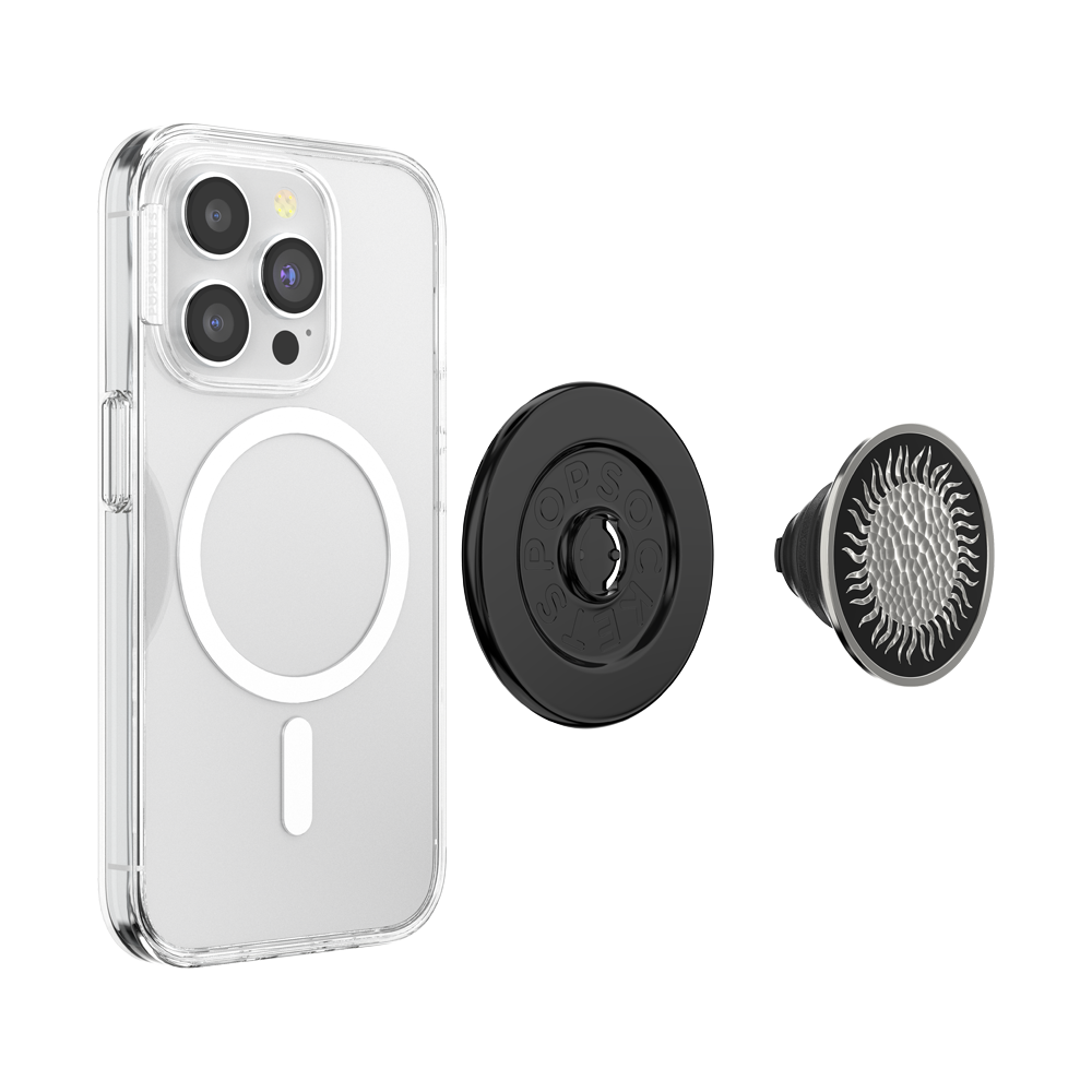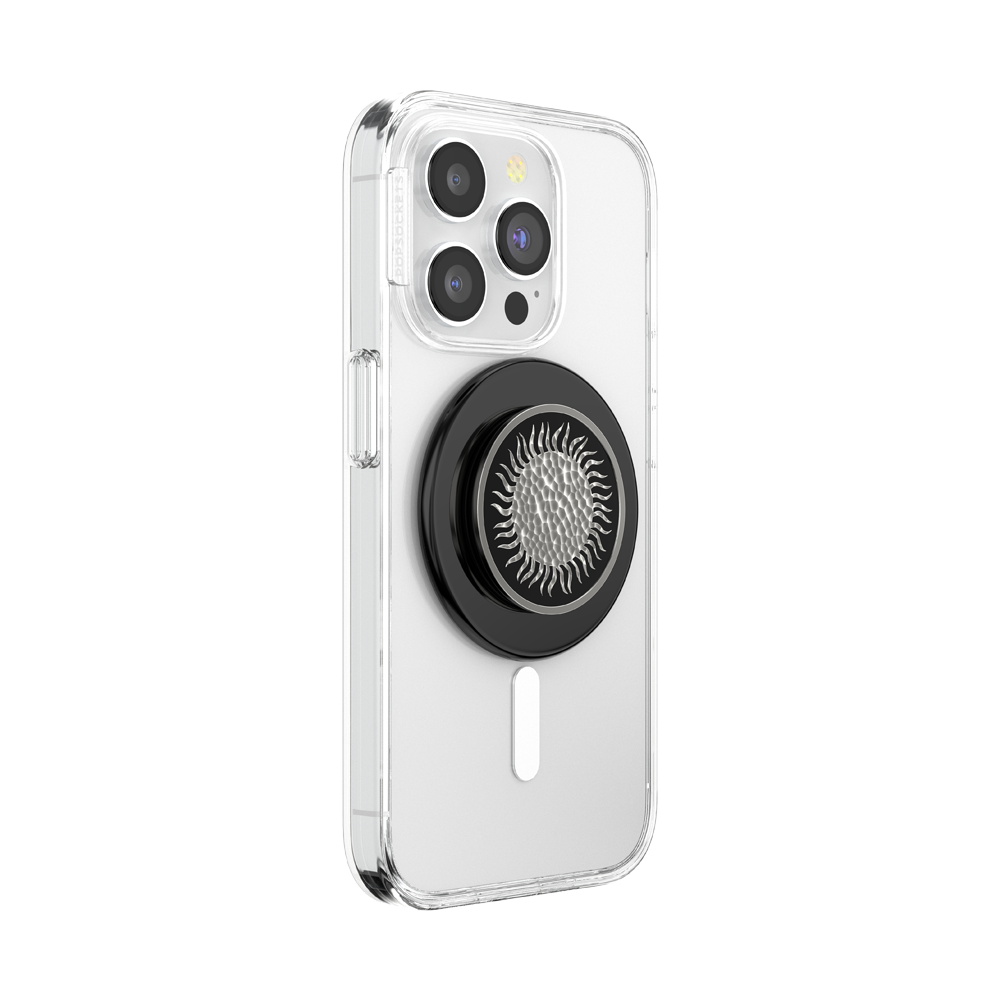 A hammered sunburst for western nights energy. Easily swap between MagSafe accessories. Includes magnetic adapter ring for compatibility.